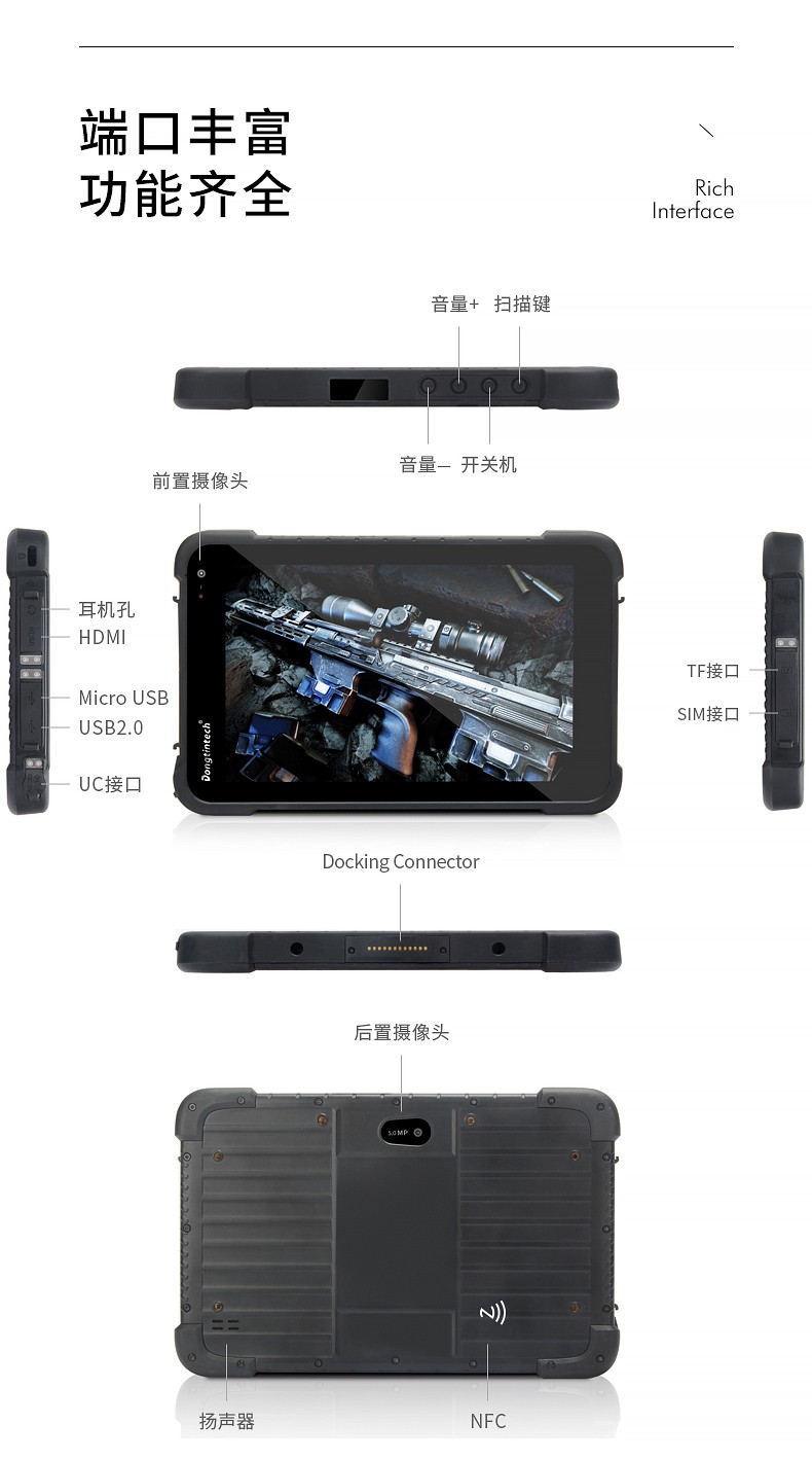 型號:DTZ-I0808E,概述:東田三防10.1英寸工業(yè)三防定制平板電腦,防摔電容屏,輕薄機(jī)身,但端口豐富,拓展性強(qiáng),滿足工作多種需求。