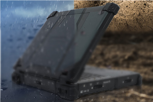 全加固的機身設(shè)計比半加固更為厚實,細(xì)致的防撞角設(shè)計讓機器可以承受高達(dá)1.8米的跌落測試。端口防水塞采用鎖扣式,內(nèi)置黑色減震棉,不僅防塵、防濕,還能有效防水。整機通過IP65級防護認(rèn)證,無論是機體結(jié)構(gòu)、用料還是防護等級,全加固筆記本都展現(xiàn)出比半加固筆記本更為優(yōu)異的表現(xiàn)。