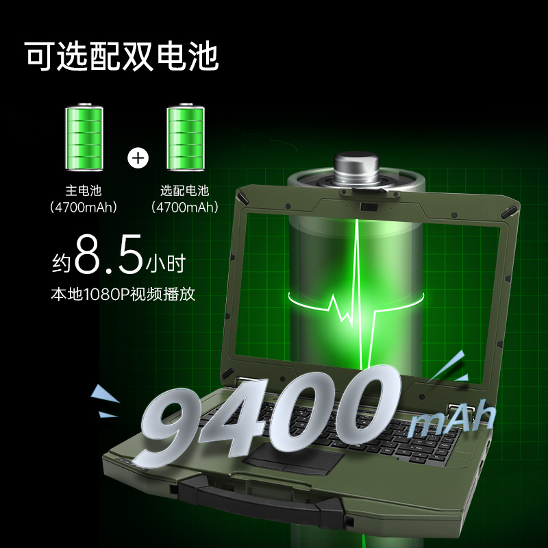 東田三防14英寸三防加固筆記本,部分端口支持定制,更符合工作場景需求,可選配雙電池,9400mAh大容量電池,工作續(xù)航更持久。